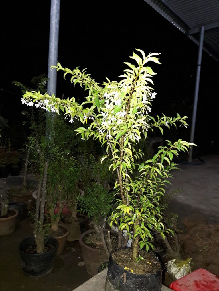 Cây loại này có đặc điểm ra hoa quanh năm, giúp bạn có thể thưởng thức hoa nhiều vụ trong năm. Hoa cây dạng trung thường sẽ có kích thước nhỏ hơn hoa của loại lá lớn. Tuy vậy nó sẽ cho ra nhiều hoa hơn và đặc biệt là số lượng hoa sẽ nhiều hơn. Mùi thơm của mai chiếu thủy lá dạng trung có mùi thơm đậm hơn.