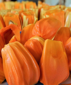 Còn nhắc đên mít ruột đỏ thì đây là loại trái cây ngon được rất nhiều người dân ưa chuộng. Quả mít thích hợp để ăn tươi, làm đồ uống hay làm nguyên liệu cho công nghệ sấy. Cây ghép ra trái sau hơn 2 năm trồng.