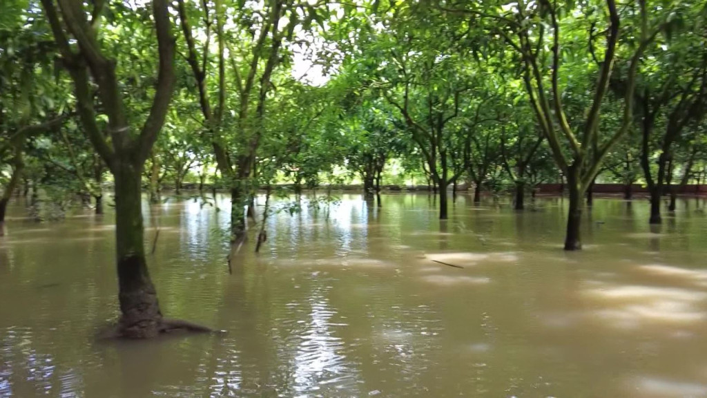 Khi vườn bị ngập do mưa, cần bơm rút nước nhanh cho vườn khi trời tạnh mưa. Nếu lớp đất mặt bị đóng váng trở nên cứng thì dùng cuốc răng phá váng dưới tàn của cây để không khí và nước thấm xuống đất dễ hơn.