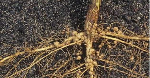Thường ít gặp nhưng không hiếm. Do tuyến trùng là loại sinh vật luôn có sẵn trong đất, ký sinh và làm tổ trên rễ của bất kỳ loại thực vật nào. Khi tấn công chúng làm cho rễ biến dạng, phồng lên, giảm khả năng hấp thu dinh dưỡng từ đất, đồng thời là nơi để nấm bệnh tấn công cây. Cây giảm sinh trưởng và bắt đầu suy kiệt.