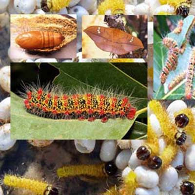 Có nhiều dạng sâu ăn lá bơ, nhưng ở Việt Nam chủ yếu có 3 loại: sâu róm đỏ (Cricula trifenestrata), sâu xanh cuốn lá (Delias aglaia), sâu xanh ăn lá (Fentonia sp). Trong đó sâu róm đỏ là loại gây hại mạnh nhất. Có thể phát triển thành dịch nếu không có biện pháp chủ động phòng trừ. Chúng thường gây hại từ khoảng giữa mùa hè đến cuối mùa thu. Một đàn sâu róm đỏ có thể ăn trụi lá 1 cây bơ trưởng thành chỉ trong 5-10 ngày. Khi mất lá cây sẽ giảm sức sinh trưởng do không thể quang hợp, cây nhỏ có thể suy kiệt và chết.