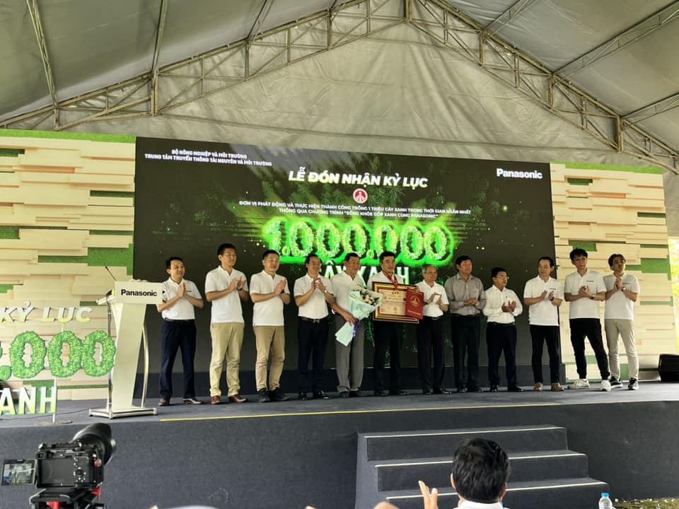 🌳 Ngày 18/03/2025, , tại Nhà máy điện gió Hòa Bình 1 (huyện Hòa Bình, tỉnh Bạc Liêu), Bộ Nông nghiệp và Môi trường, Tổ chức Kỷ lục Việt Nam đã chính thức trao tặng danh hiệu “Kỷ lục Việt Nam” cho Tập đoàn Panasonic với thành tích xuất sắc: Trồng 1.000.000 cây xanh trong thời gian ngắn nhất (từ tháng 12/2022 đến 31/12/2024). ” thông qua chương trình “Sống khỏe góp xanh cùng Panasonic”.