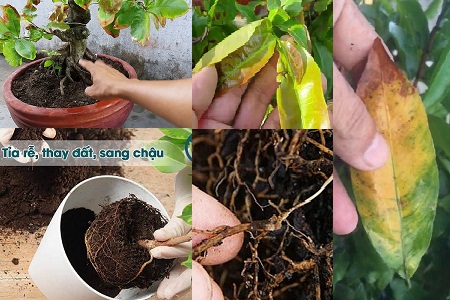 – Biện pháp khắc phục: Vận chuyển cây vào vị trí mát, khô thoáng, ít gió. Kiểm tra chậu trồng đã có lỗ thoát nước chưa? Nếu chưa thì cần đục lỗ thoát nước. Nếu đất ẩm bão hòa, lấy nhẹ cây ra khỏi chậu để ngoài khoảng 4-5 giờ rồi cho lại vào chậu. Cắt bỏ những lá héo, khô, vàng, cành cong, mầm ngã màu nâu để giúp cây thông thoáng hạn chế nhiễm các bệnh nấm.