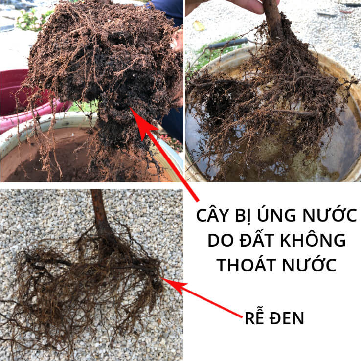 - Cây được cung cấp quá nhiều nước so với nhu cầu, diện tích đất trồng, thể tích chậu hoặc khả năng thoát nước của chậu kém. Đây là điều kiện thuận lợi cho các vi sinh vật yếm khí phát triển, hình thành CO2, các axit hữu cơ và một số chất độc hại, tạo ảnh hưởng xấu cho cây trồng.